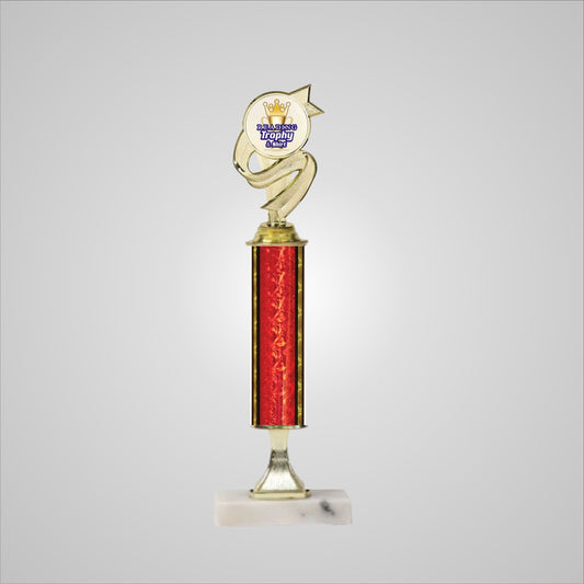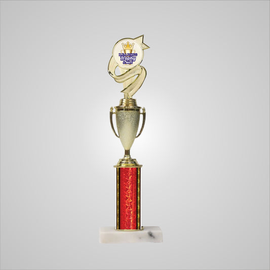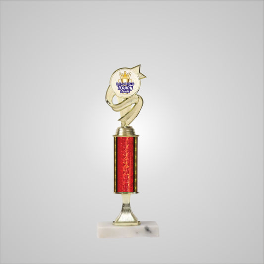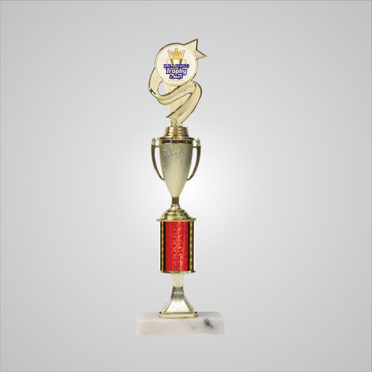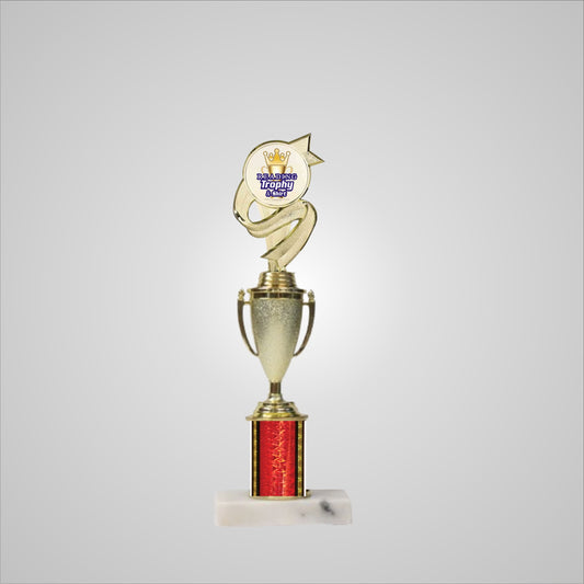 12"x15" Cherry finish frame plaque with blue marble plate with gold florentine borderer on a brushed metal gold background