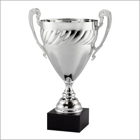 Silver Italian Cup with swirl design on black marble base. Available in 5 sizes.