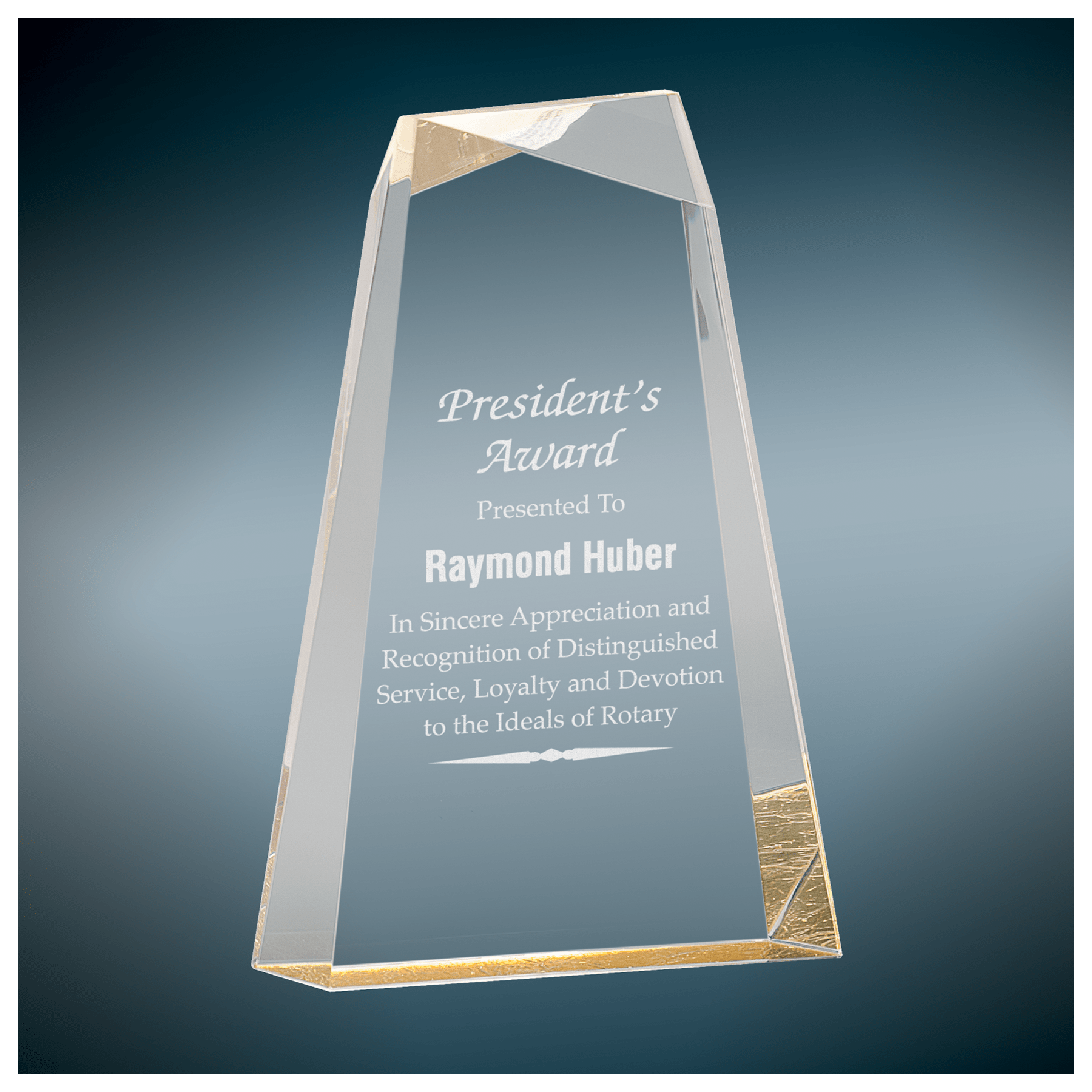 Facet Wedge Acrylics are 1.25" thick and self-standing. They come in 3 different sizes and 2 colors- blue and gold.