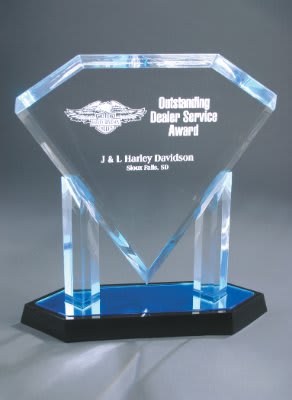Floating Diamond Acrylics feature clear acrylic posts mounted to a 1 inch thick mirrored acrylic base. Diamond slides into base and it is not permanently attached. They come in 3 different sizes and 2 colors- Blue and Gold.