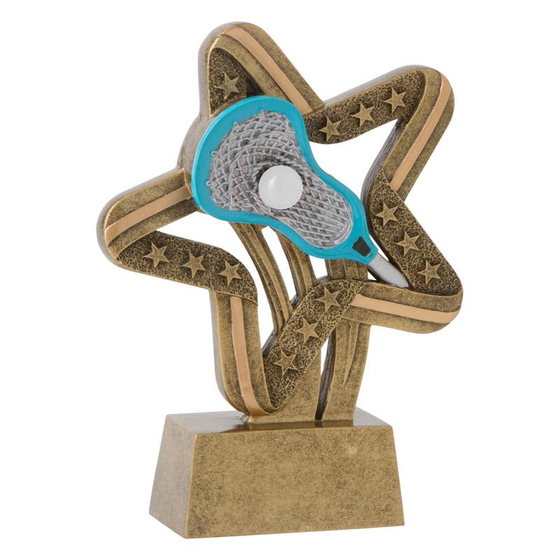 6" Golden star with a colored lacrosse stick perfect for any all-star.