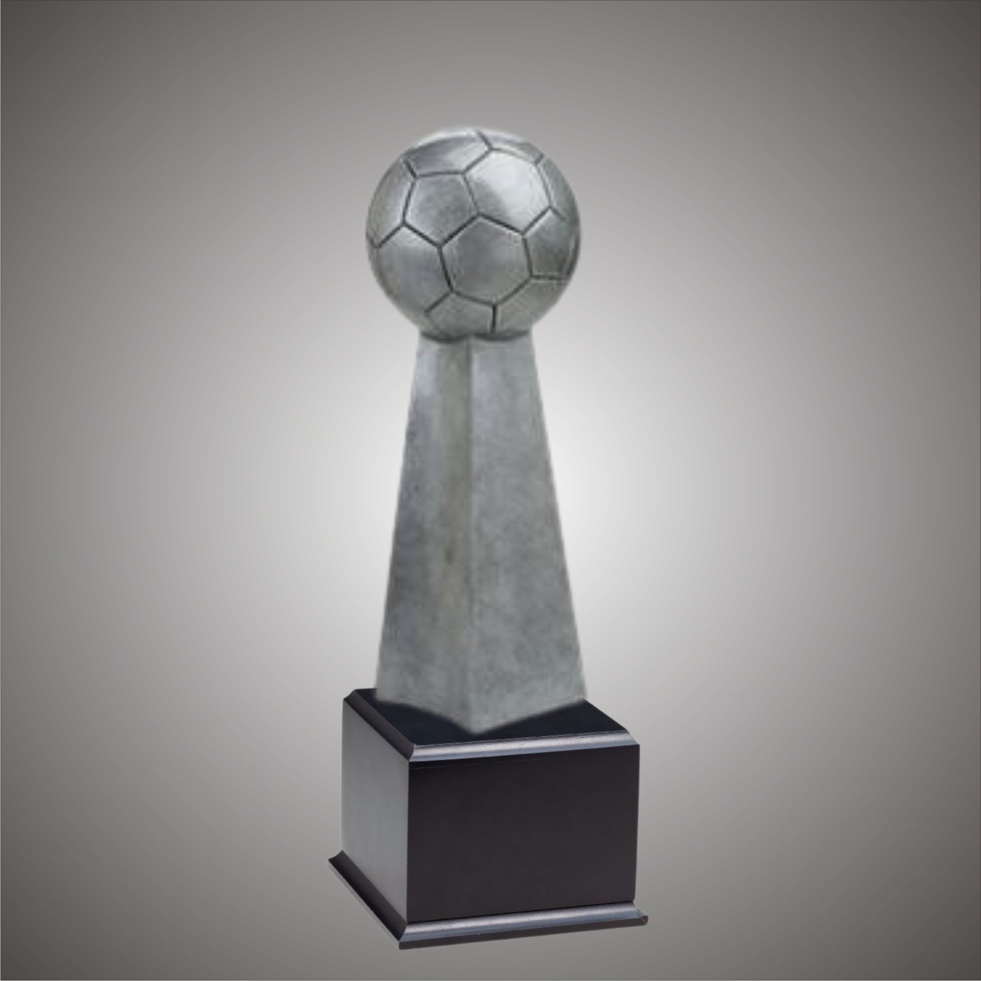 9.5" or 14" Antique silver Soccer resin on your choice of black or cherry base.