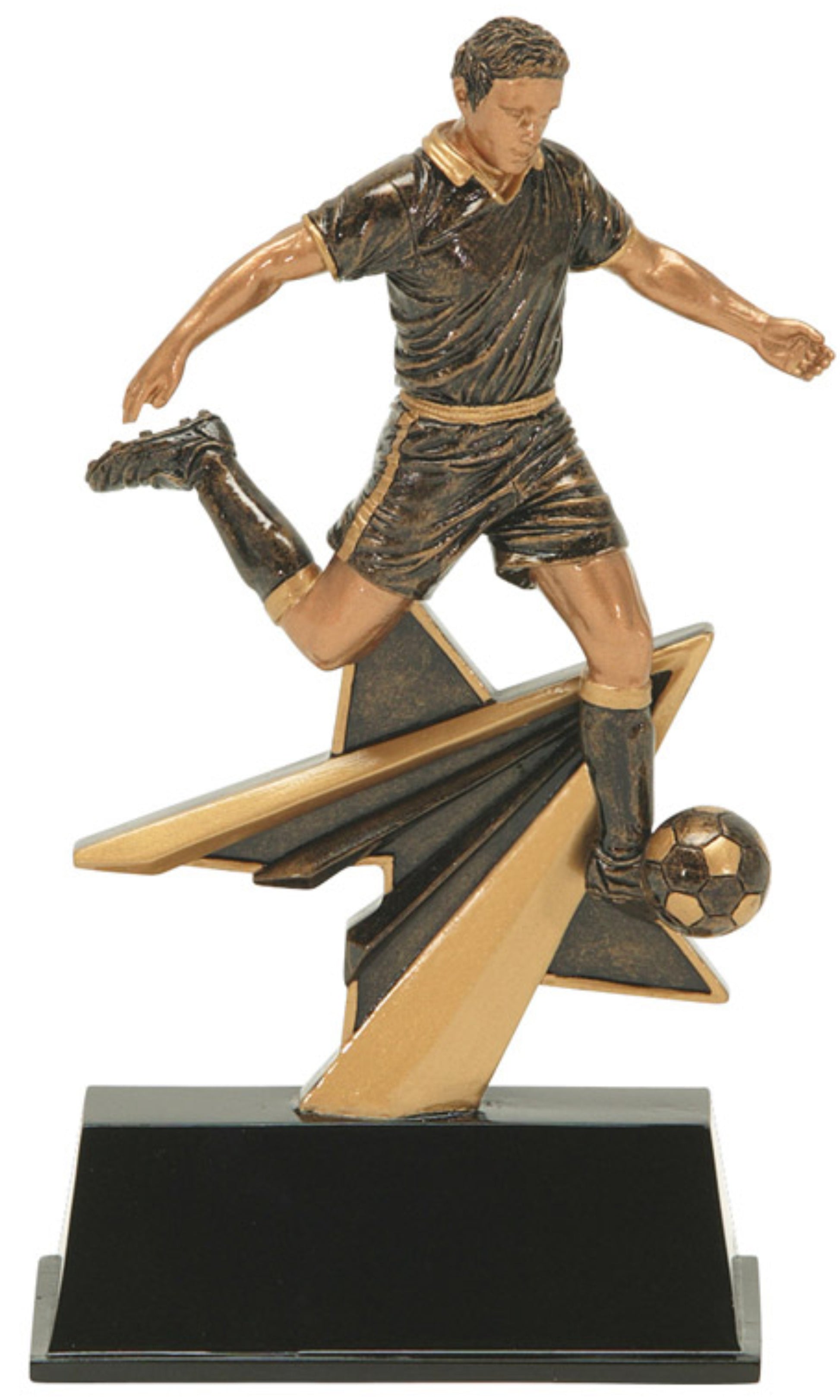 Bronze and Gold 7" Soccer player Star Resin black base. Available in Male or Female