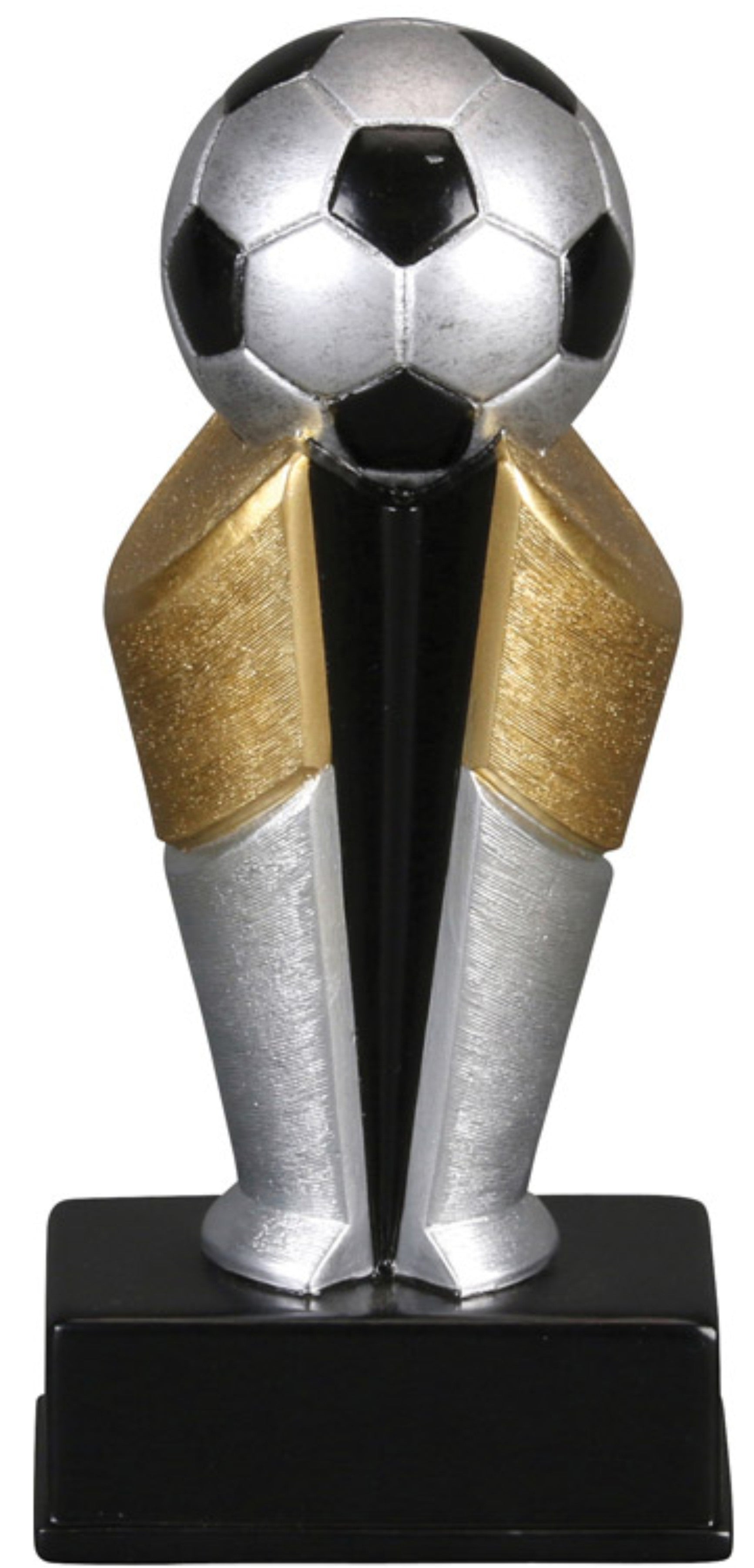 Available in 3 sizes, this resin is perfect for your soccer award.